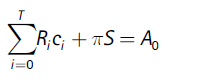 [10]The present value of all assets and earnings is denoted by A0 (also, capital market is assumed to be perfect), the interest rate factor is represented by Ri, and π is the price of S. Notice that S can be interpreted as a future-oriented capital. Such a capital does not depreciate over time. The model assumes that π is the same for every individual and equal to 1. Applying the first order conditions, gives / as the marginal utility of consumption at any age . When adjusted by a discount factor and an interest rate factor, this marginal utility must equal the marginal utility of wealth,λ0: