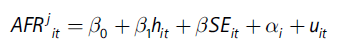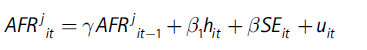 [14]In this model, AFR j it -1 is the first lag of the dependent variable and hit, the annual homicide rate is defined as an endogenous variable.