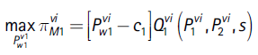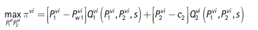 [1]After substituting the demand functions, the first-order conditions for the retailer are given by the price equations shown below which depend on the inherent qualities as well as the wholesale prices.