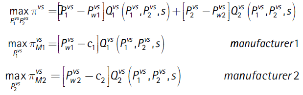 By substituting these retail prices into each manufacturer’s profit function, the best reply functions are