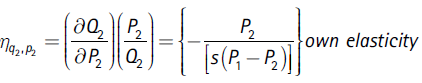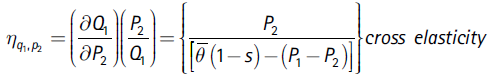The first product has a positive demand Q1>0 when (1-s) > (P1 – P2). Note that we also require Q2>0 if product 2 is to have a positive demand. Next, we check the own elasticity and cross elasticity for each product and proceed to interpret this.