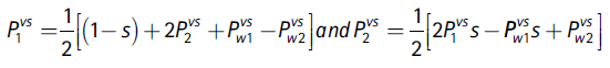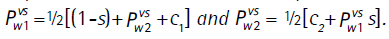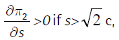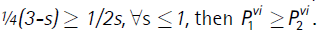 Proof: P1m > P1vs . The main restraint of this condition is given by 3s/(2+s) > c, which is the same as s>2c/(3-c). The latter is always satisfied and thus: P1m > P1vs