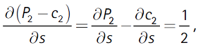 As this expression must be negative, (P1 s– P2 )>0, it requires for P1s> P2. In the extreme case of maximum differentiation, if