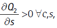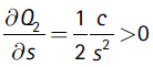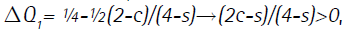 Proof: Q1m < Q1vs Replacing the values from the table above, the inequality is (1-c) < (2-c)/(4-s). Rearranging it, c(s-2)<s. This inequality can be expressed as -2c< s(1-c). The second term varies in the range 0<s(1-c)<1, because s≤1, c<1 and