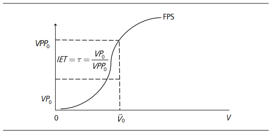 su producto potencial es VPP0 siendo VP0 la producción efectiva. El IET, τ, para dicha producción efectiva sería igual a VP0 sobre VPP0 .
