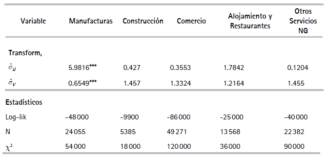 son las desviaciones estándar estimadas de los errores de los IET y de la función de producción.“a corto plazo, los resultados sugieren que un margen sustancial para mejorar el desempeño social de las empresas dentro de las industrias existentes puede derivarse de programas para mejorar la eficiencia técnica de las empresas individuales. Los intentos rudimentarios de explicar las fuentes de la eficiencia técnica indican que los esfuerzos para aumentar el nivel de educación de los gerentes con respecto a los aspectos técnicos del proceso de producción, una supervisión más intensiva de la mano de obra y las políticas diseñadas para aumentar la utilización de la capacidad instalada deberían rendir beneficios en términos de mejor desempeño y reducción de costos sociales” (p. 338).