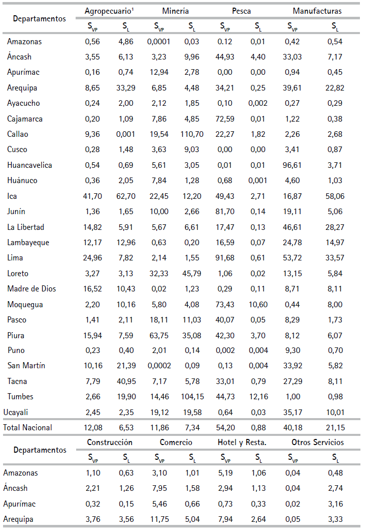 Este artículo deriva del proyecto Mapa de Potencialidades Económicas y Productivas financiado por el BID, auspiciado por el Ministerio de Economía y Finanzas de Perú. El autor agradece la asistencia de Carlos A. Pérez, José Mendoza y Pablo Rojas y los comentarios pertinentes de los revisores del documento, los cuales han mejorado la calidad del artículo.