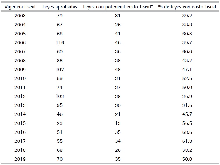 * Incluyen leyes con costo fiscal, independientemente de que este pueda ser cuantificable o no.