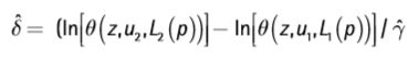 Si suponemos que se tienen dos períodos, un año inicial y uno final, se obtienen dos ingresos per cápita medios u1 y u2, curvas de Lorenz L1(p) y L2(p) respectivamente; por ende, se puede realizar la estimación de la elasticidad total de la pobreza de la siguiente manera: