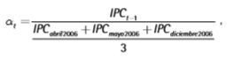 donde IPCt-1 es el IPC del mes inmediatamente anterior a la fecha de publicación de la línea de pobreza y el denominador es el promedio simple del IPC de abril, mayo y diciembre del año base.