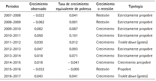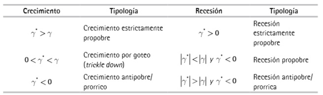 Medina y Galván (2014) en un estudio de la Comisión Económica para América Latina y el Caribe plantean que según Kakwani et al. (2004) el crecimiento propobre puede definirse según su grado de intensidad: