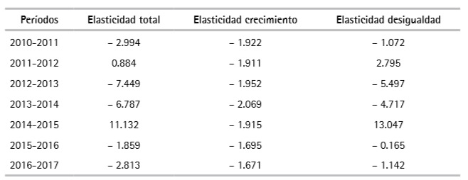 Así, la elasticidad total de la pobreza está compuesta de la siguiente manera:
