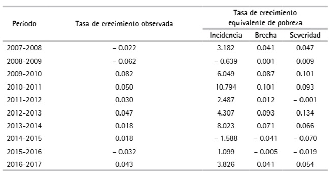 Ahora bien, el análisis del crecimiento, de la desigualdad y de la pobreza debe hacerse de manera simultánea y, para saber si el crecimiento podría reducir o incrementar la pobreza, dependerá del resultado que ha tenido la distribución de los ingresos.