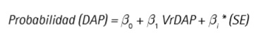 En la práctica se construye un modelo cuya variable dependiente es la probabilidad de que un individuo esté dispuesto a pagar por acceder a los beneficios del proyecto, la cual está en función de otras variables como el valor de la DAP (VrDAP) y características socioeconómicas SE (Ecuación 1).