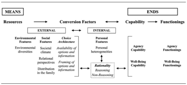 Converting resources into valued states requires choice and reason (Garcés, 2020b; Garcés-Velástegui, 2020). These are the elements composing the CA’s notion of human agency. Sen (1999) regards the latter as bringing about change and judging this change and its underlying preferences. While the first element points to the significance of freedom, the second signals the relevance of rationality. Both, as part of one notion, suggest the dynamics and interdependence of the component of agency. Thus, by placing people at the locus of attention, the CA provides an account of human beings and their agency, which is why the framework has also been said to be ‘agency-oriented’ (Sen, 1999).