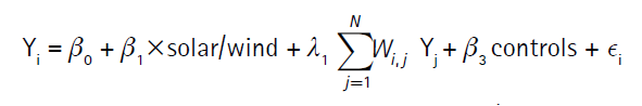 (1)Secondly, model (2) is fitted with a spatial lag of solar/wind based on W: