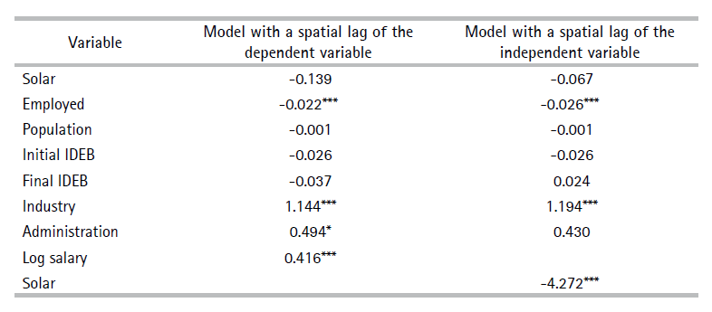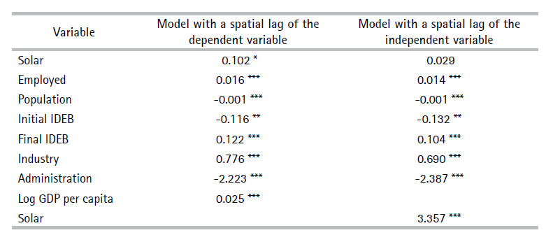 Table 7 shows the results of spatial autoregression in the presence of solar power plants.