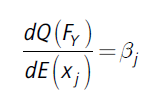 (5)Donde βj es el efecto del incremento en el valor medio de Xi sobre Q (FY), manteniendo el resto de las covariables constantes (para las variables dummy deberá interpretarse que el cambio es en proporción a los individuos de un grupo base).