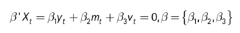 Siguiendo a Boschen y Mills (1995) es posible estudiar la neutralidad monetaria de largo plazo donde un incremento permanente en el stock de algún agregado monetario no tiene efectos duraderos en la producción. Para ello, pueden estimarse modelos de VEC entre variables monetarias y reales. Así, sea Xt = {yt,mt,vt}' un vector de p variables medidas en el período t donde ytes la producción, mtes un vector de variables monetarias nominales y vt es un vector de variables reales. De acuerdo con Lütkepohl (2005) puede plantearse la hipótesis de que entre estas variables hay una relación de equilibrio de largo plazo como sugiere la ecuación (1).