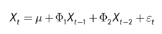 (3)Donde Γ1 =Φ1 - lp,∏ = Φ1 + Φ2 - lp (∏ tiene dimensión pxp ). Asimismo, reordenando términos puede obtenerse la ecuación (4).