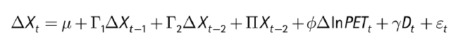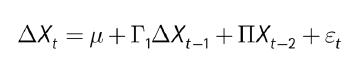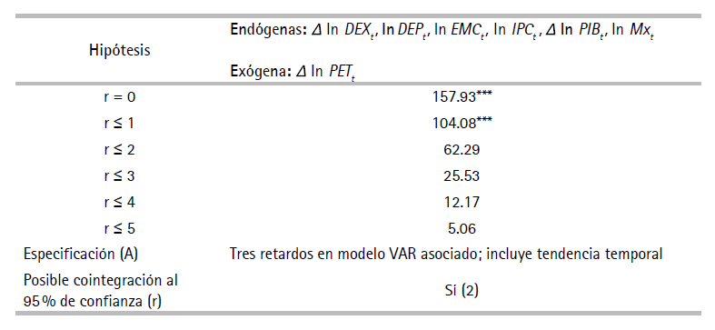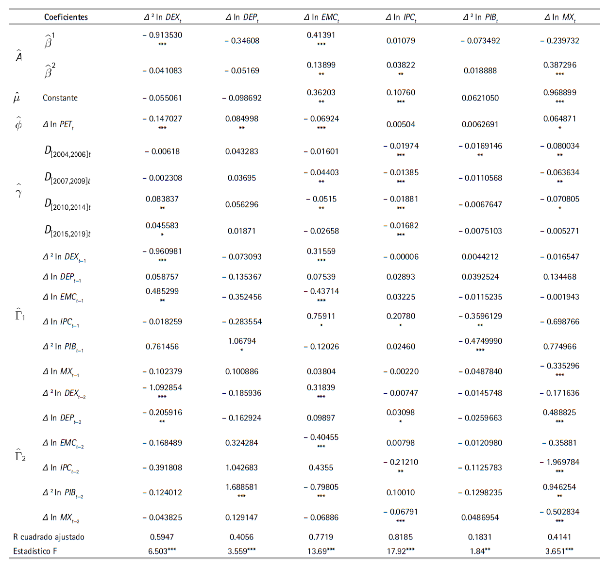 El modelo VEC estimado en este trabajo cuenta con la estructura que se muestra en la ecuación (5).