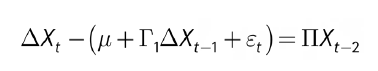 Para ilustrar la estimación de β asumamos un modelo VAR(2), como indica la ecuación (2).