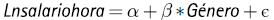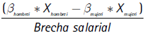 Donde β es el estimador de una distribución salarial no discriminatoria.