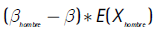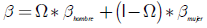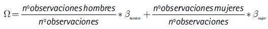 Cuando Ω = 1 o Ω = 0 se obtienen respectivamente los β correspondientes a la distribución de los hombres y a la distribución de las mujeres como no discriminatoria.