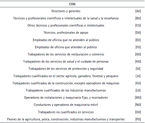 A continuación, incluimos los factores explicativos más utilizados en la literatura: edad, nivel educativo, tipo de contrato (indefinido o temporal) y antigüedad en el trabajo; y junto a ellos incluimos la ocupación que desempeñan los trabajadores según la clasificación de ocupaciones que ofrece la EES-2018, dieciséis categorías que se detallan en el cuadro A1 del Anexo. El tratamiento de este factor constituye otra de las contribuciones del estudio. Las ecuaciones por estimar se registran en (2)