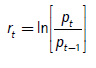 Por otro lado, con cada serie de precios de cada producto se procede a calcular los rendimientos diarios expresados en logaritmos (véase ecuación [ 9]).