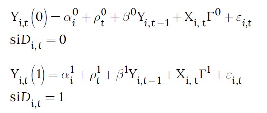 (3)Donde Ȳ(1|D i,t = 1) y Ȳ(0|D i,t = 1) reflejan los respectivos resultados potenciales en cada instante de tiempo t, asociados al subconjunto de países con consejos fiscales.