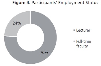 There were 20 participants in this study, 14 teachers from the first version of the course and six teachers from the second version. None of the participants had any prior experience working with e-tivities or with the concept of e-moderation, but most of them had previously worked with the Moodle platform at least once in their academic or professional life. See Figures 2, 3, and 4 for more information about the characteristics of the participants.