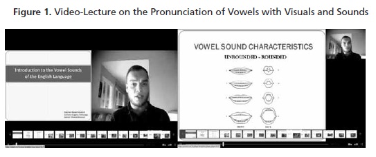 As a final remark, the observed average quality of audio is low: Eight videos show poor quality and only nine of them deserve a satisfactory level. Audio quality is influenced mostly by local arrangements in the recording infrastructure, such as narrator location, ambient noise isolation, and microphone type. Voice quality is an important feature of learning units for language learning: therefore, this substandard audio is a concern to be addressed in teacher training (Murray, Koziniek, & McGill, 2015).
