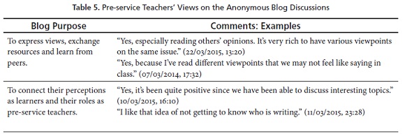 According to Question 9 in the anonymous survey, 92% of participants considered positive the anonymous blog contributions in order to first express their views and also to learn from their peers. Moreover, the surveyors also used the blog as a tool to exchange not only viewpoints but further links and resources that improved the quality of the online debate, as shown in Table 5. The blog was used as a platform that aimed at connecting their thoughts as pre-service teachers of secondary education and their insights as current postgraduate learners in this Master’s degree programme. Equally, they were quite critical of the methods used in their past and the great variety of possibilities they can offer today’s youngsters when learning an FL.