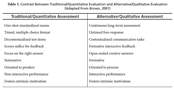 Keywords: Alternative assessment, qualitative evaluation, quantitative evaluation.