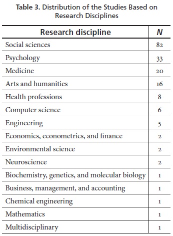 The distribution of the studies based on research discipline is shown in Table 3. Some articles are registered under more than one discipline.