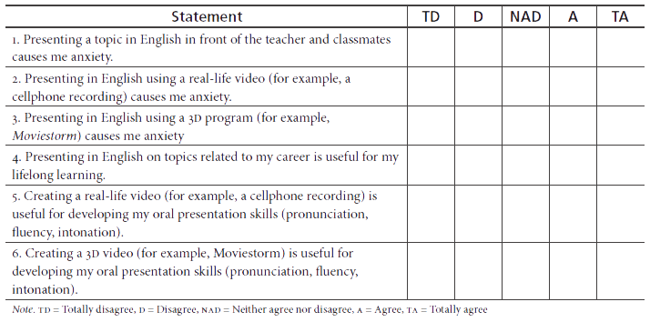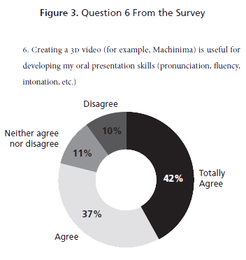 6. Creating a 3d video (for example, Machinima) is useful for developing my oral presentation skills (pronunciation, fluency, intonation, etc.)