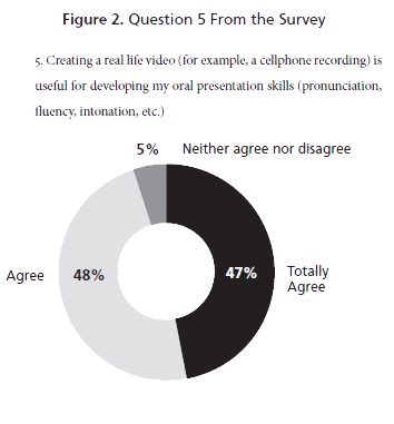 5. Creating a real life video (for example, a cellphone recording) is useful for developing my oral presentation skills (pronunciation, fluency, intonation, etc.)