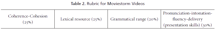 Videos “should be characterized as an information source within which data could be identified. To create data, the researcher strategically selected video segments from an available corpus and used them for a specific analytic purpose” (Goldman, Erickson, Lemke, & Derry, 2007, p. 18). Therefore, in this research, real-life and Moviestorm videos were gathered as a set of data in order to categorize and analyze them, taking into account the participants’ performances. To collect these data, a pedagogical intervention based on the students’ videos was implemented in order to see how this intervention worked in this specific context. Since this investigation analyzed oral presentation skills and new language abilities in computer software, the videos were an ideal tool for this study.