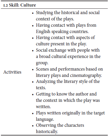 The group had as one of its main objectives to work with literary pieces to let participants be able to have contact with the language culture (Essif, 2011; Sobral, 2011). Sixty-six percent of the students in the surveys said the group met that objective. The intercultural competence inside the group was mentioned as one of the strengths of the project’s methodology. Table 4 shows the activities that according to the participants helped them work on their intercultural and literary competence.