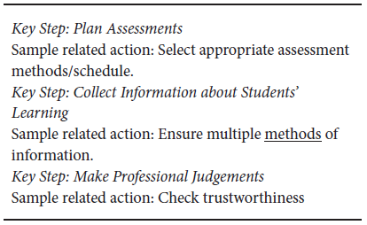 The actions in Table 1 can be conceptualized against the overarching components of LAL, that is, knowledge, skills, and principles. Selecting appropriate methods, for example, requires knowledge of assessment instruments so they are fit-for-purpose; the use of varied methods for assessment may require skills in design, administration, and evaluation. Finally, checking whether an assessment can be trusted reflects back on principles for doing sound assessment; specifically, an instrument whose information cannot be trusted may lead to unfair practices.