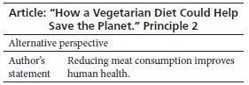 In this exercise, Pedro could think about the author’s statement from different perspectives. However, these perspectives reflected extreme positions: either completely agree or disagree. He did not provide any middle positions such as ovo-lactovegetarians or lacto-vegetarians. Then, when presenting his perspectives to the class, he expressed,