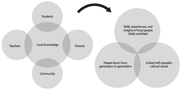 This local knowledge is the basis for the construction of new knowledge. We cannot ignore that this knowledge has a changing character, subject to the new changes that continue appearing around communities (Canagarajah, 2005). Local knowledge entails all the wisdom elders have, constituting a treasure trove of information beyond schooling because it is steeped in a community’s context. Usually, it is knowledge acquired through survival. As such, it is part of the intangible heritage of families and communities; it is the accumulated knowledge of many generations and covers a wide diversity of context-based (rather than school-based) topics. Local knowledge is mainly “orally transmitted (from generation to generation) and is largely undocumented; it is based on experimentation, adaptation, and innovation and driven by the pragmatic demands of everyday life” (Šakić Trogrlić et al., 2019, “Conceptualising Local Knowledge” section, para. 7).