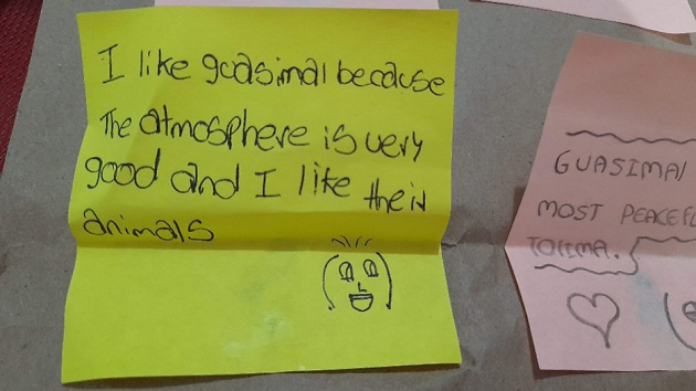 Dear friend, thank you for sharing everything in your life, your adventures, the place where you live, what you told me through is very nice, I would like to go one day to meet you and you will show me how beautiful Guasimal is. Where you see, me it would be easy to get to know and that you were the one to show me the landscapes that Guasimal has and I hope that we continue to communicate and that could be your friend and then thank you very much for all friends and that you and your family are very well. From your friend: RS-Student 2. (Journal entry)