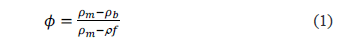 Luego, partiendo de la ecuación (1) y tomando como ρb la densidad calculada por la ecuación (2) se puede calcular la porosidad.