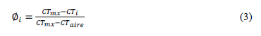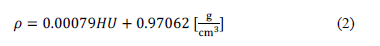 También se puede calcular la porosidad directamente a partir de los valores HU obtenidos por TAC, como se muestra en la ecuación (3).