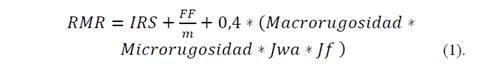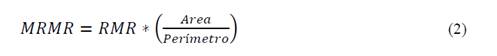 El índice RMR modificado, es la base para poder encontrar el valor de MRMR, el cual se expresa como el valor del RMR modificado, multiplicado por un factor de radio hidráulico, el cual, involucra el área de intervención de la obra y el perímetro del macizo rocoso (Ecuación 2).
