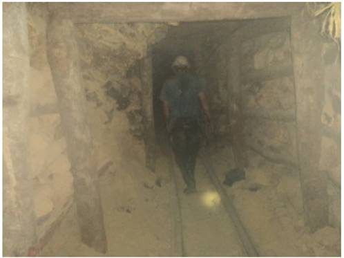 La presencia de material particulado y polvo (ERC-8) fue el riesgo predominante en las minas visitadas (Imagen 5), manifestándose de dos formas: la primera ocurre en el momento de la operación unitaria de perforación, la cual se realiza en la mayoría de los casos en seco bien sea empleando el martillo neumático o con taladro eléctrico la cual libera una gran cantidad de material particulado PM10 a la atmósfera minera. La segunda se evidenció en la disposición inadecuada de estériles al aire libre y transito continuo de volquetas a través de las vías de acceso, las cuales no se encuentran pavimentadas y sin ningún tipo de riego de agua continuo para disminuir la generación de polvo.