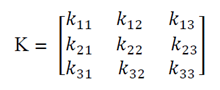 El tensor de segundo orden (Κ) representa cuánto vale la susceptibilidad magnética para la componente del campo magnético en dirección 𝑥 en tres direcciones x, y, y z: kx= (k11 ,k12 ,k13 ); luego cuánto vale la susceptibilidad magnética para la componente del campo magnético en dirección 𝑦 en las mismas tres direcciones x, y, y z: ky= (k21 ,k22 ,k23 ); y finalmente, cuánto vale la susceptibilidad magnética para la componente del campo magnético en dirección 𝑧 en las tres direcciones x, y, y z: kz= (k31 ,k32 ,k33 ).