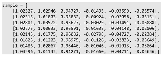donde sample es un objeto del tipo array del módulo NumPy de Python que agrupa los objetos de arreglo matriciales que representan los tensores; y numTensors es el número de tensores en la muestra.